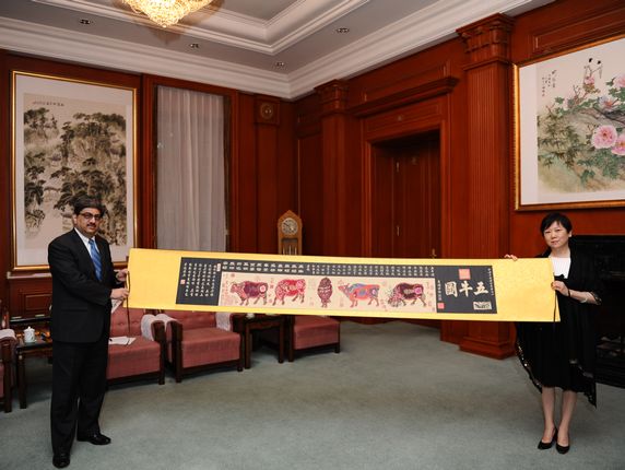 9月24日,李小林会长在友协会见并宴请了印度外交部东亚司司长班浩然一行。