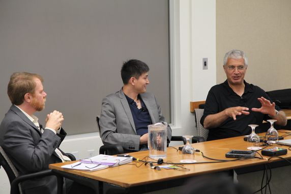 《财新》总编胡舒立(左五)等出席中美文化艺术论坛开幕讨论会