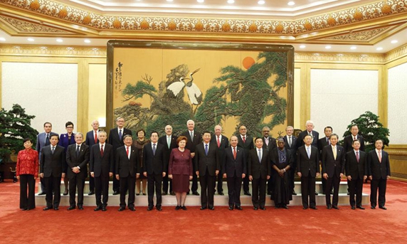 11月30日,国家主席习近平在北京人民大会堂会见来华出席“2017从都国际论坛”的世界领袖联盟成员。新华社记者 姚大伟 摄