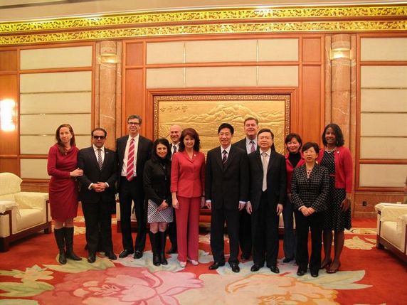 12月11-13日,应全国友协邀请,经中美交流基金会组织,以美国威斯康星州副州长丽贝卡·克里费希女士为团长的美国地方政府代表团一行12人成功访问四川。代表团由来自威斯康星州、华盛顿州、纽约州、科罗拉多州、伊利诺伊州、田纳西州、堪萨斯州、密苏里州等8个州的中青年副州长、州议员、市长、市县政府官员等组成。此行是代表团成员第一次来华访问。
