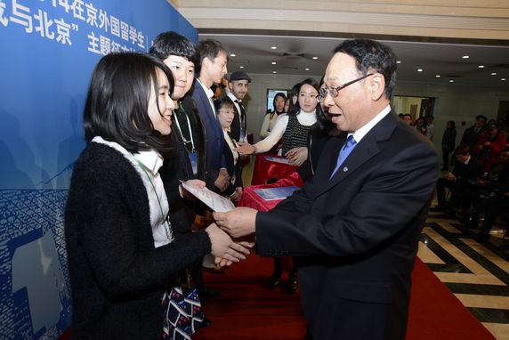 北京市人民对外友好协会名誉会长陈广文出席活动,并为获得一等奖的外国留学生颁发了奖状及优秀作品文集。