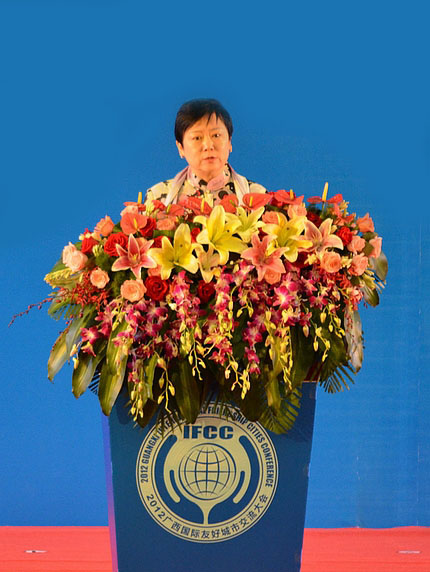2012广西国际友好城市交流大会今天隆重召开。此次大会对于回顾广西友城发展历史,促进中外地方政府交流,实施合作共赢具有十分重要的意义。在此,我谨代表中国人民对外友好协会和中国国际友好城市联合会,对大会的召开表示热烈的祝贺!