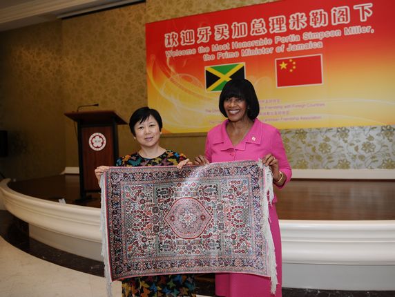 President Li extended her warm welcome to Prime Minister Miller and her party, and recalled her joyful experience of visiting Prime Minister Miller in year 2007 when she visited Jamaica with Mr. Cheng Siwei, the president of China-Latin American and Caribbean Friendship Association. President Li said, since China and Jamaica established diplomatic relations 41 years ago, the bilateral relationship of the two countries had been developing steadily; the friendly cooperation in politics, economy, trade and culture had been deepened. As one of the most active friendship-to-China organizations, Jamaica-China Friendship Association made great contribution to the above mentioned achievements. President Li also briefed the delegation about the work of the CPAFFC