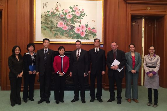 President Li positively appraised the CPAFFC’s cooperation with the German political funds, Germany-China Friendship Association and the German Embassy in China. She made an introduction of the CPAFFC’s recent working plan on German affairs and the brief status of the cooperation among the Chinese friendship cities with their German counterparts. She expressed that, she would lead a youth football team from Zhidan County of Shaanxi Province to visit Germany and play a friendly match with the German players, which was sponsored by Volkswagen and would be a part of the CPAFFC’s Rainbow Bridge Programs. This event would make the children from the Chinese rural area learn more about Germany, and would bring the Chinese and German youth closer.