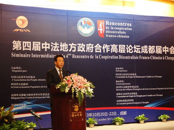 The fourth mid-session of High-Level China-France on Local Government Cooperation with the theme of Innovative Development of Cities was jointly held by CPAFFC, Sichuan Provincial People’s Government, National Commission for Decentralized Cooperation of French Ministry of Foreign Affairs and French League of Cities in Chengdu, China on 21th October, 2013.
