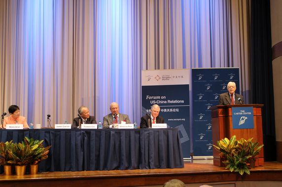 The Forum on US-China Relations co-hosted by CPAFFC and the Carter Center was held on Nov. 11th at Atlanta, Georgia. Jimmy Carter, former US President, Cui Tiankai, Chinese Ambassador to the U.S., Li Xiaolin, President of CPAFFC, Zbigniew Brzezinski, former National Security Advisor, Charlene Barshefsky, former U.S. Trade Representative and other scholars and business leaders attended the Forum, sharing views on how to build the new type of major country relations between China and the U.S..