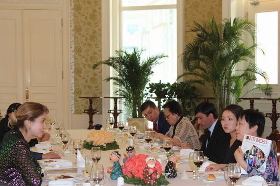 5月15日,李小林会长在和平宫会见并宴请了乌兹别克斯坦艺术与文化论坛基金会主席、政治研究中心主任、乌现任总统长女卡里莫娃教授一行。